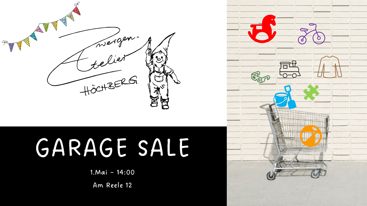 Am 1. Mai findet kein Malen, sondern ein Hofflohmarkt vor dem Zwergenatelier statt. Hier könnt Ihr nach Kinderkleidung und Kinderspielzeug stöbern, und Euch bei schönem Wetter auf einen Plausch mit Freunden treffen! Kommt vorbei!